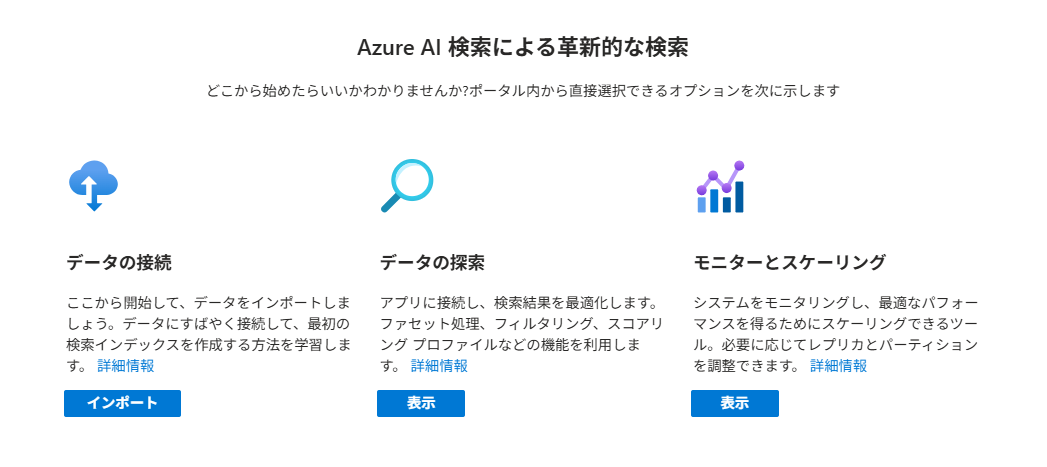 セットアップ画面を表示するには、AI Searchの概要画面からインポートボタンをクリックする。