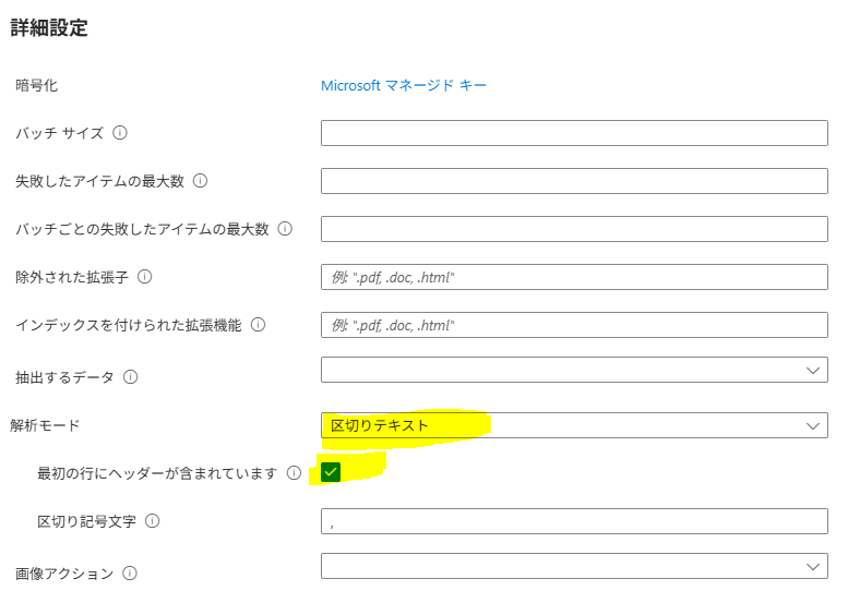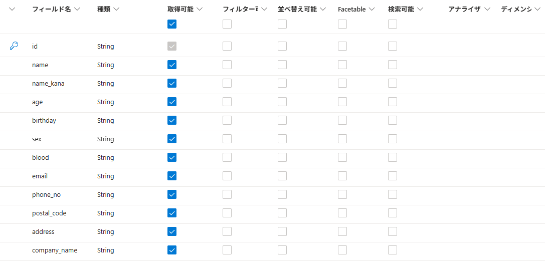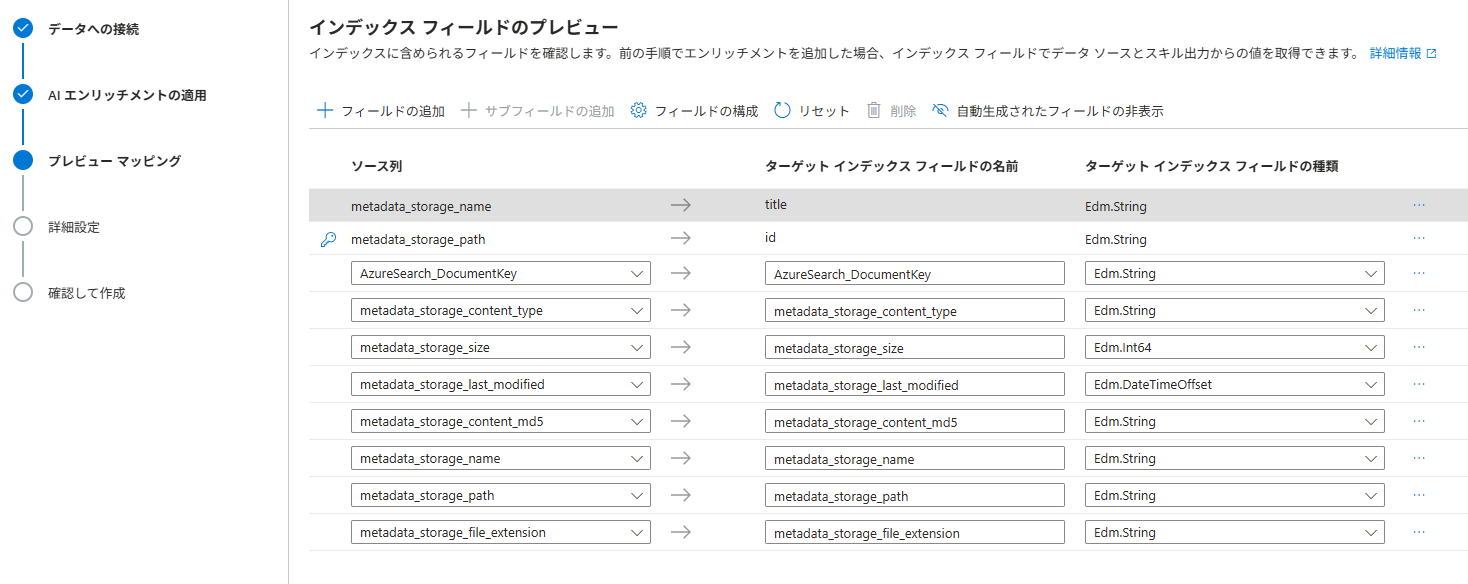 インデックスフィールドの編集画面にて、主キーは「metadata_storage_path