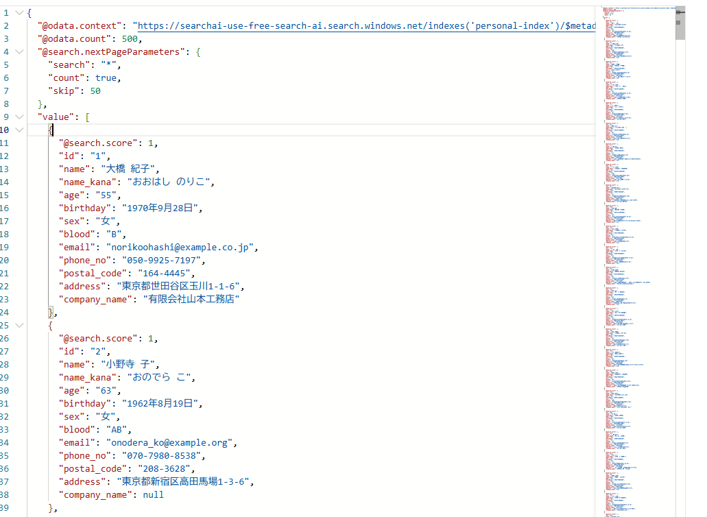 インデックス > 検索エクスプローラ画面にて、きちんとインポートできていることを確認。