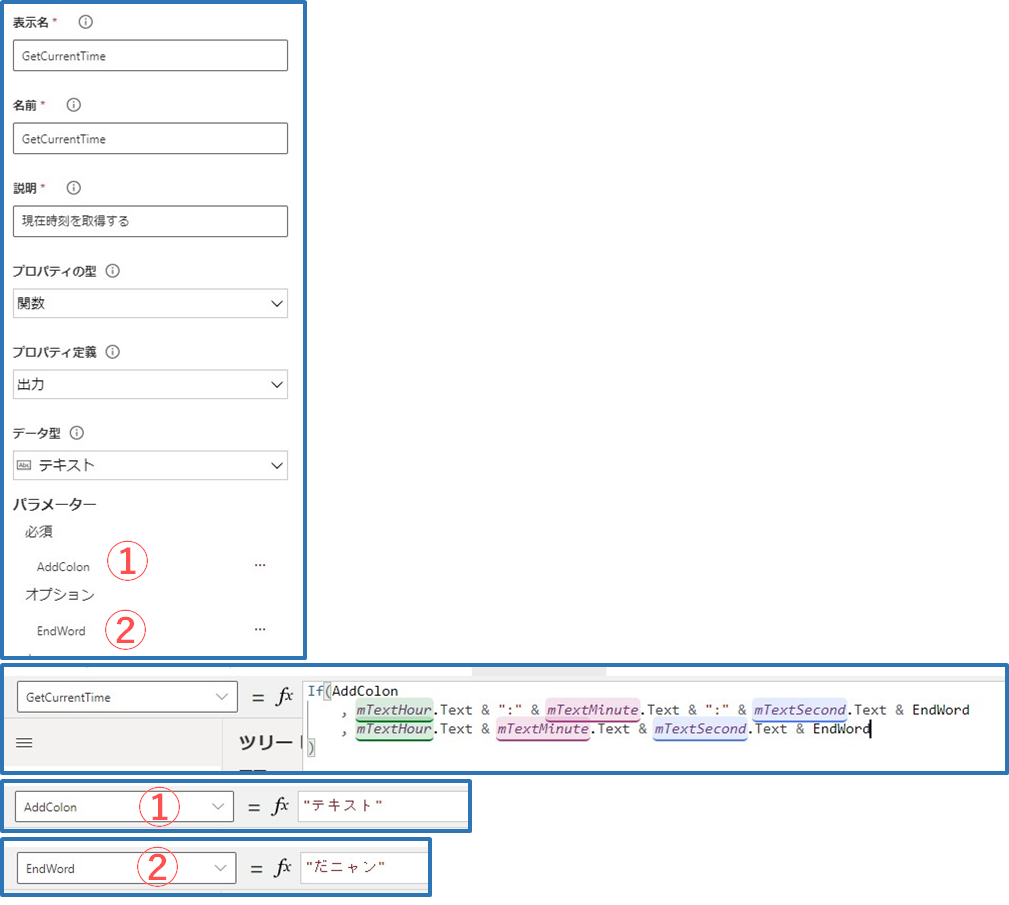 定義プロパティが「出力」の関数は、C#における関数とほとんど同じである。